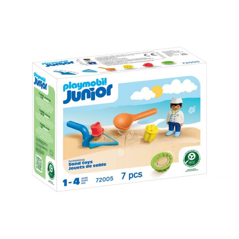 Características especiales del producto: • Levantador de tartas con triángulo para montar un pastel completo de arena • Cuchara para llenar golosinas de arena • Molde para muffins • 2 sellos de doble cara para decorar • Se puede combinar con otros sets de arena PLAYMOBIL JUNIOR • Tamaño del servidor de tartas: aprox. 178x71x47 mm (LxAnxAl) PLAYMOBIL JUNIOR – diseñado para nuestros fans más pequeños. ¡Perfecto para manos pequeñas y descubrimientos adaptados a los más pequeños! Con muchas funciones atractivas como apilar, encajar o clasificar. Deja que tu hijo de 1 a 4 años dé sus primeros pasos en el gran mundo PLAYMOBIL con PLAYMOBIL JUNIOR. PLAYMOBIL JUNIOR cuida la seguridad de tu hijo: es libre de BPA y no contiene piezas pequeñas que puedan tragarse. Todos los sets PLAYMOBIL JUNIOR están fabricados con más del 90% de plástico de origen biológico (certificado ISCC PLUS). El plástico se rastrea hasta materias primas renovables mediante el enfoque de balance de masas. Con esto, nos comprometemos a reducir significativamente el uso de recursos fósiles. PLAYMOBIL JUNIOR - ¡Descubre el mundo de una forma adaptada para los más pequeños!